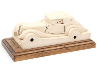 longueur 26,5 cm - réalisation en résine, présenté sur socle en chêne massif - quelques petits frottements sur la carrosserie (2 manques de matière par endroits dont un majeur sur l'arrière de la carrosserie) - les maîtres modèles servaient à la fabrication des moules, il étaient fait en résine, bois, aluminium ou plâtre à une échelle double ou triple du futur modèle - pièce récupérée lors de la fermeture de l'usine - RARISSIME !