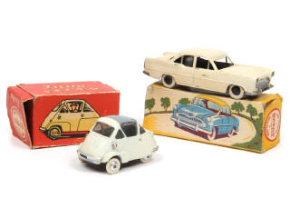 comprend : ISETTA VELAM & SIMCA VEDETTE - pneus plus ou moins séchés - boites en états 'c' & 'd' - marquages sur les planchers & quelques traces d'oxydation sur les axes de roues