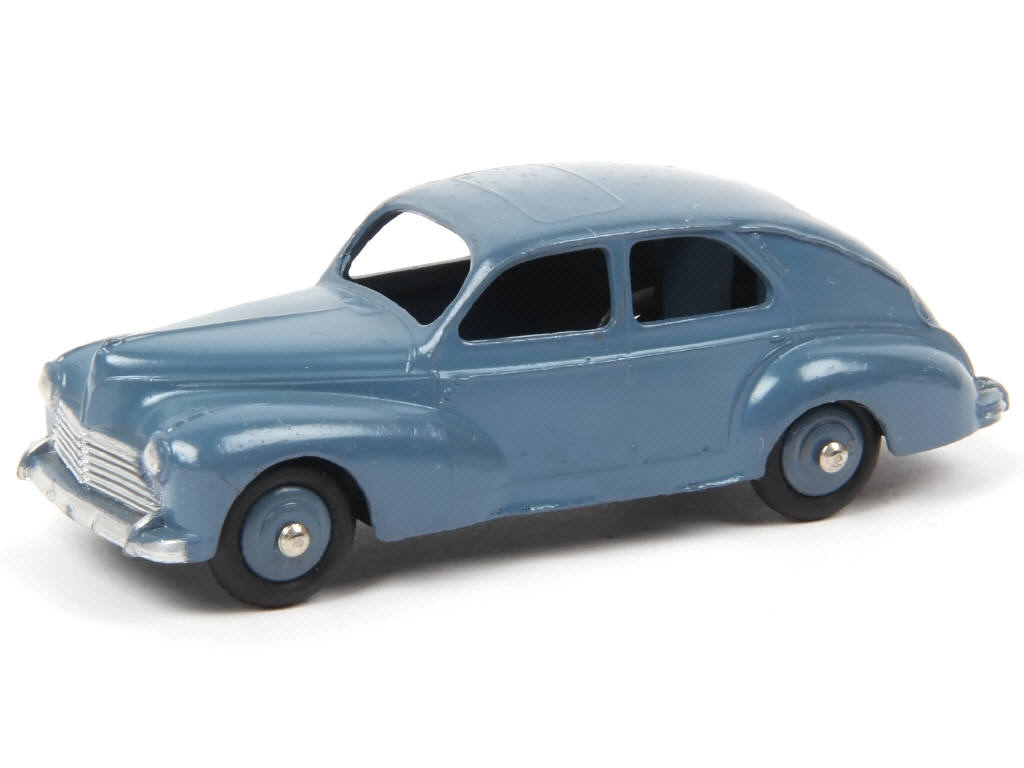 DINKY TOYS (FRANCE) 24R PEUGEOT 203 Petite lunette arrière (version avec intérieur de toit quadrillé & ailes lisses) bleu pétrole, jantes identiques