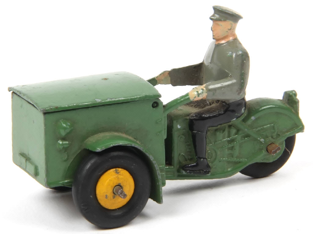 DINKY TOYS (FRANCE) 14A Triporteur (dernière version avec roues à pneus 'M') vert, jantes jaunes & pilote à chemise grise