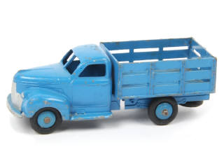 DINKY TOYS (FRANCE) 25L STUDEBAKER Tapissière (avec cabine type 2 & roues à pneus 'M') bleu vif, jantes identiques, bâche marron