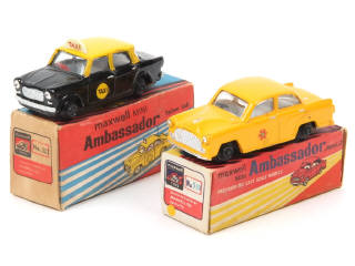 comprend : FIAT 'TAXI' & AMBASSADOR Mark II - quelques retouches d'usine - boîtes plus ou moins encrassées & jaunies (avec quelques annotations)