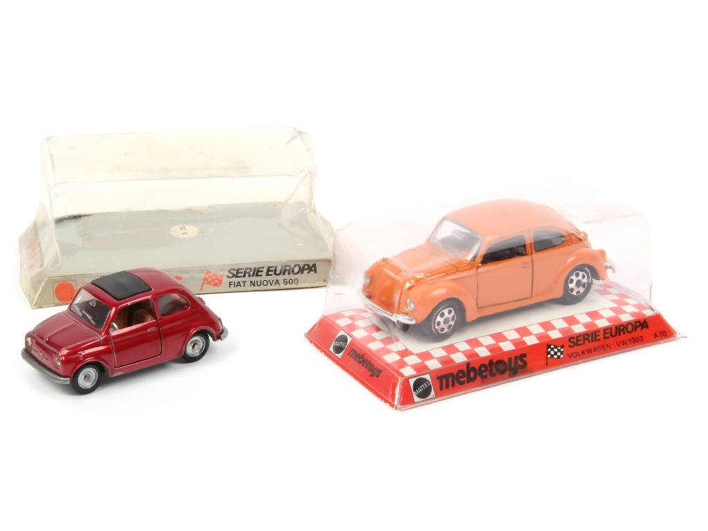 comprend : FIAT NUOVA (carrosserie légèrement décolorée) & VOLKSWAGEN 1303 (boites ouvertes dont une avec blister très déformé)