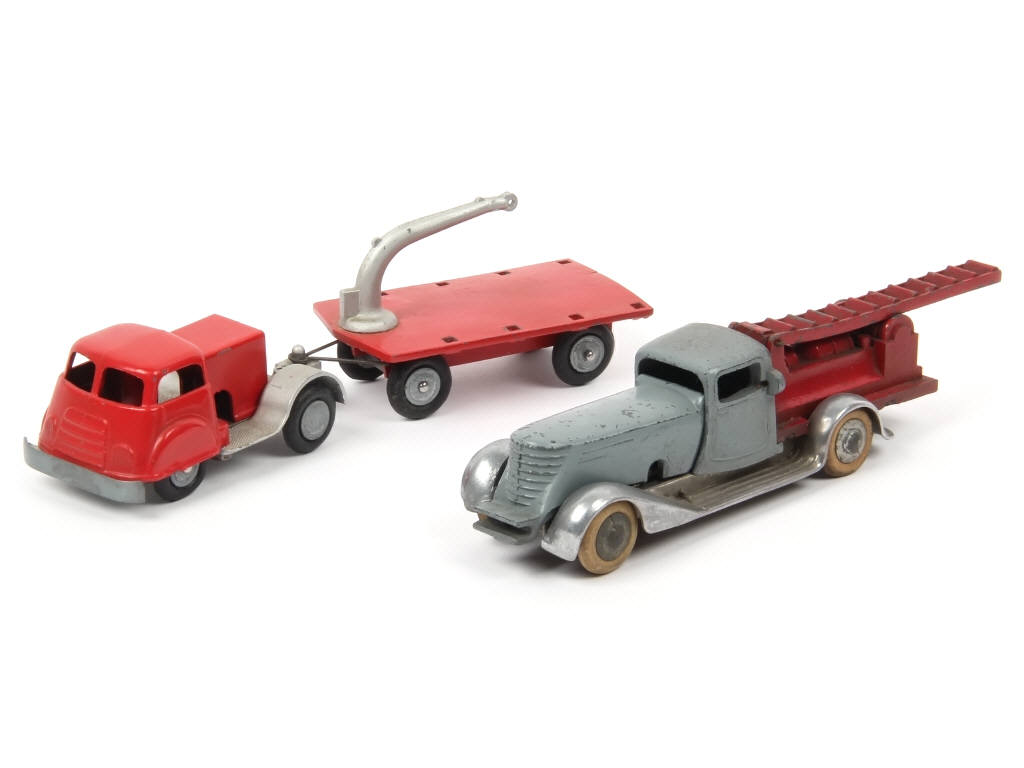 un exemplaire motorisé (fonctionne) & un autre avec une remorque (petites traces de métal fatigue avec légères déformations) - quelques petits accessoires manquants - pneus séchés & salis - quelques traces d'oxydation