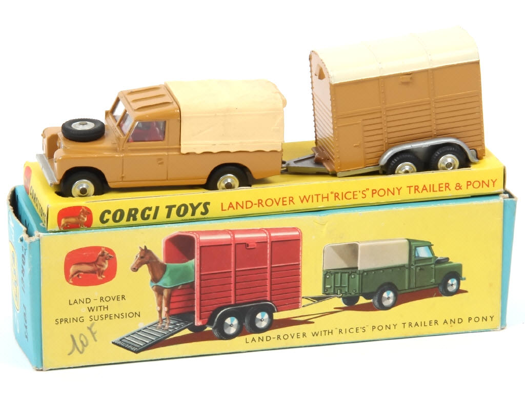 CORGI TOYS (GB) GS2 LAND ROVER avec remorque à poney marron & crème