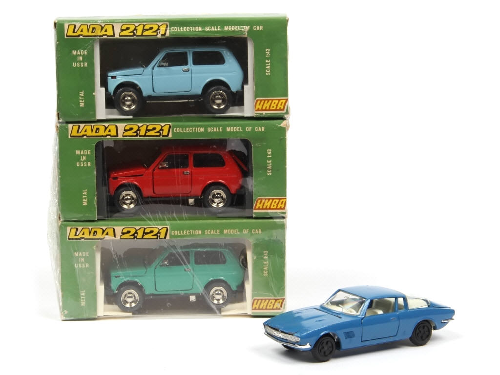 comprend les modèles LADA (sous plastique) & FORD (reproduction du modèle POLITOYS) - 3 modèles en boites en états 'b' & 'c'