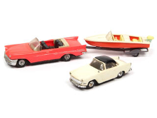carrosseries plus ou moins encrassées & déformées - pare-chocs retouchés & fixations de plancher cassées sur la voiture - on y joint une SIMCA PLEIN CIEL de la marque avec antenne cassée & manquante