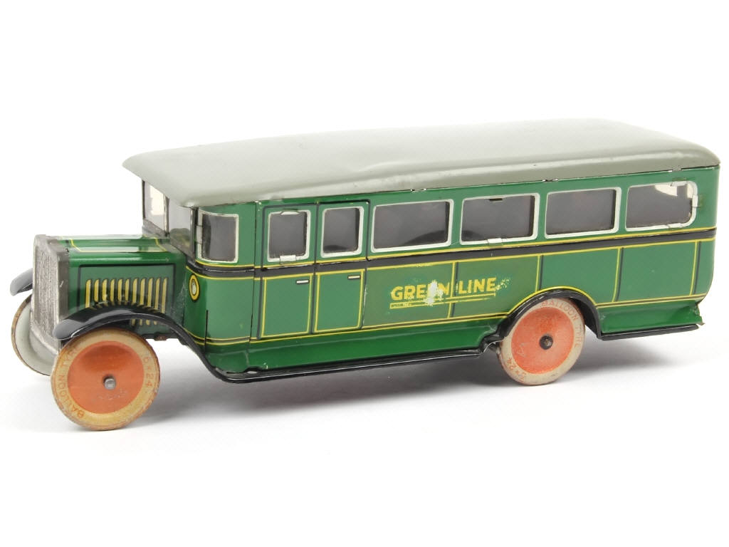 TIPPCO (ALLEMAGNE) Autocar en tôle lithographiée 'GREEN LINE' vert, noir & gris