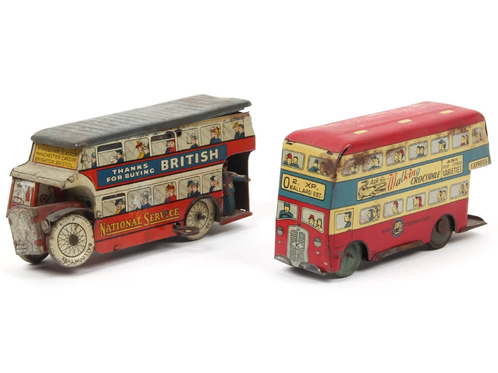 DIVERS Ensemble de 2 autobus à impériale en tôle lithographiée