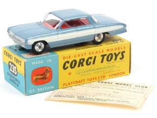 CORGI TOYS (GB) 235 OLDSMOBILE SUPER 88 bleu métal, filets blancs