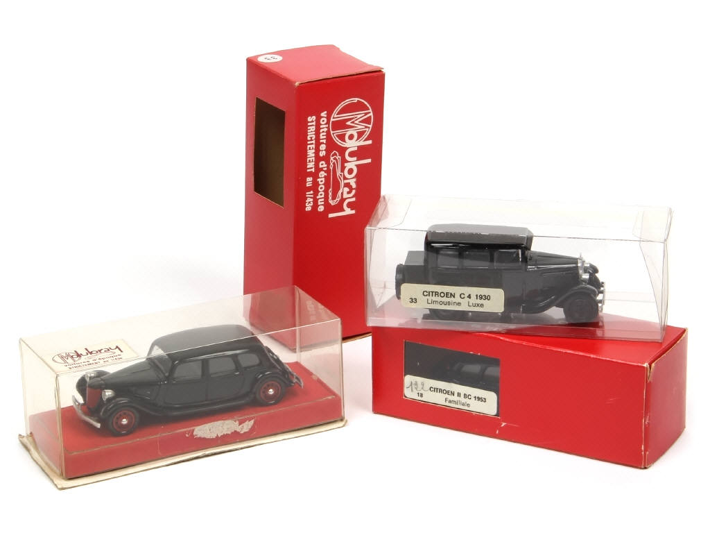comprend : 11B 1939 'NEZ DE REQUIN', II BC 1953 familiale & C4 1930 limousine de luxe - une boite en état 'c' & 2 autres avec suremballages