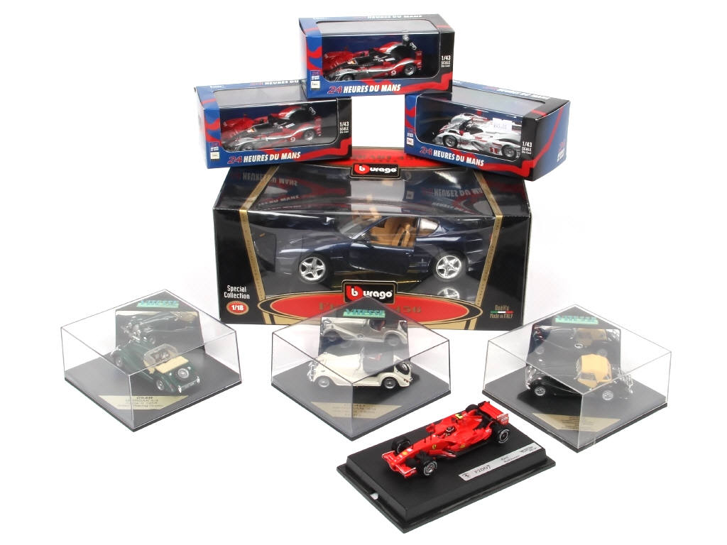 3 modèles LeMans - comprend notamment : FERRARI 456, AUDI R18 & MORGAN 4/4 - on y retrouve les marques : BBURAGO, VITESSE, MATTEL & IXO
