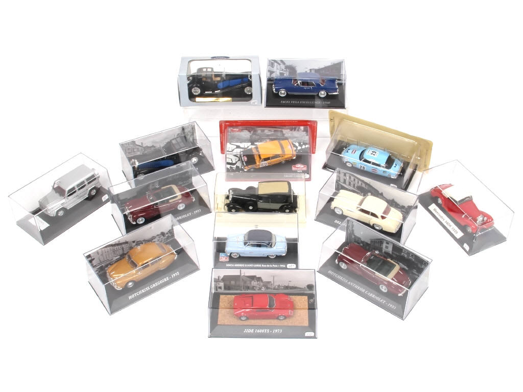 comprend notamment les modèles : BUGATTI, FIAT, DELAHAYE, CITROEN & FACEL VEGA - on y retrouve notamment les marques : EDITIONS ATLAS & SOLIDO