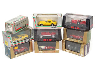 comprend notamment les modèles : JAGUAR, FERRARI & ALFA ROMEO - on y retrouve les marques : RIO, MODEL BOX & BRUMM - quelques accrocs sur les boites