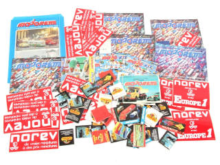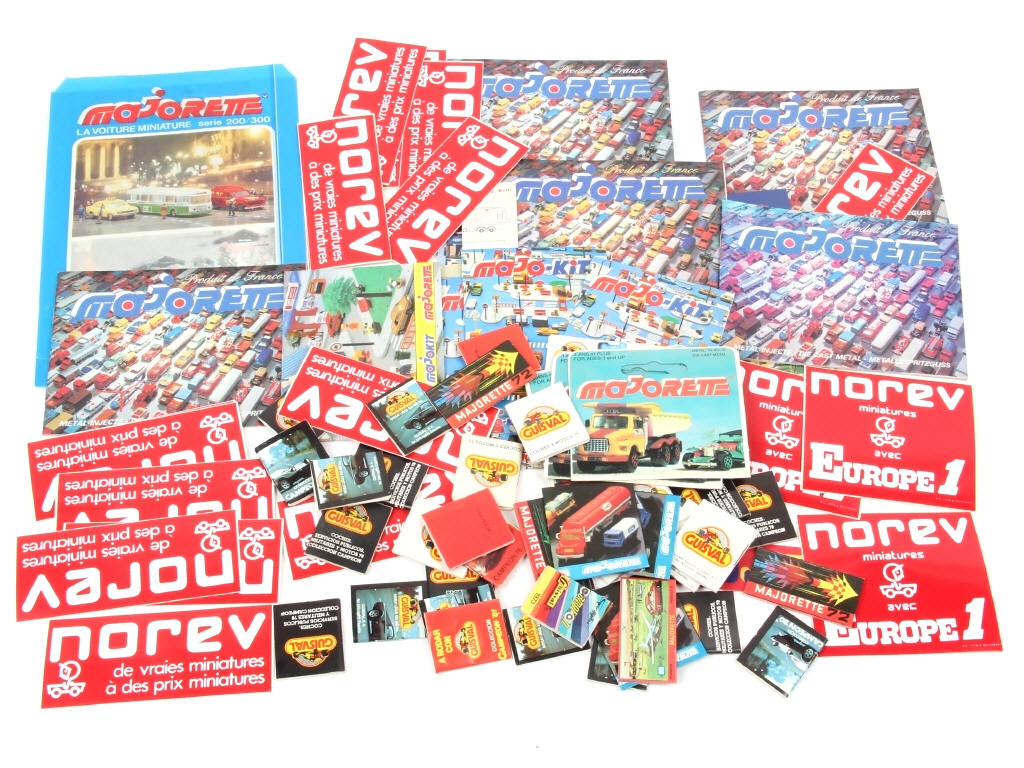 comprend notamment : autocollants, petits catalogues & supports de blisters - on y retrouve notamment les marques : NOREV, MAJORETTE, JOUEF & GUISVAL