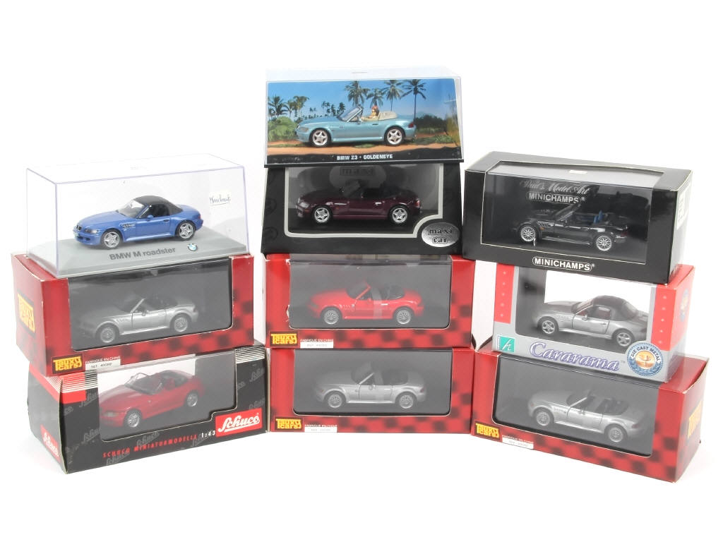 on y retrouve les marques : MINICHAMPS (manque un suremballage), SCHUCO, MAXI CAR, TAUXY CARS, FABBRI & CARARAMA