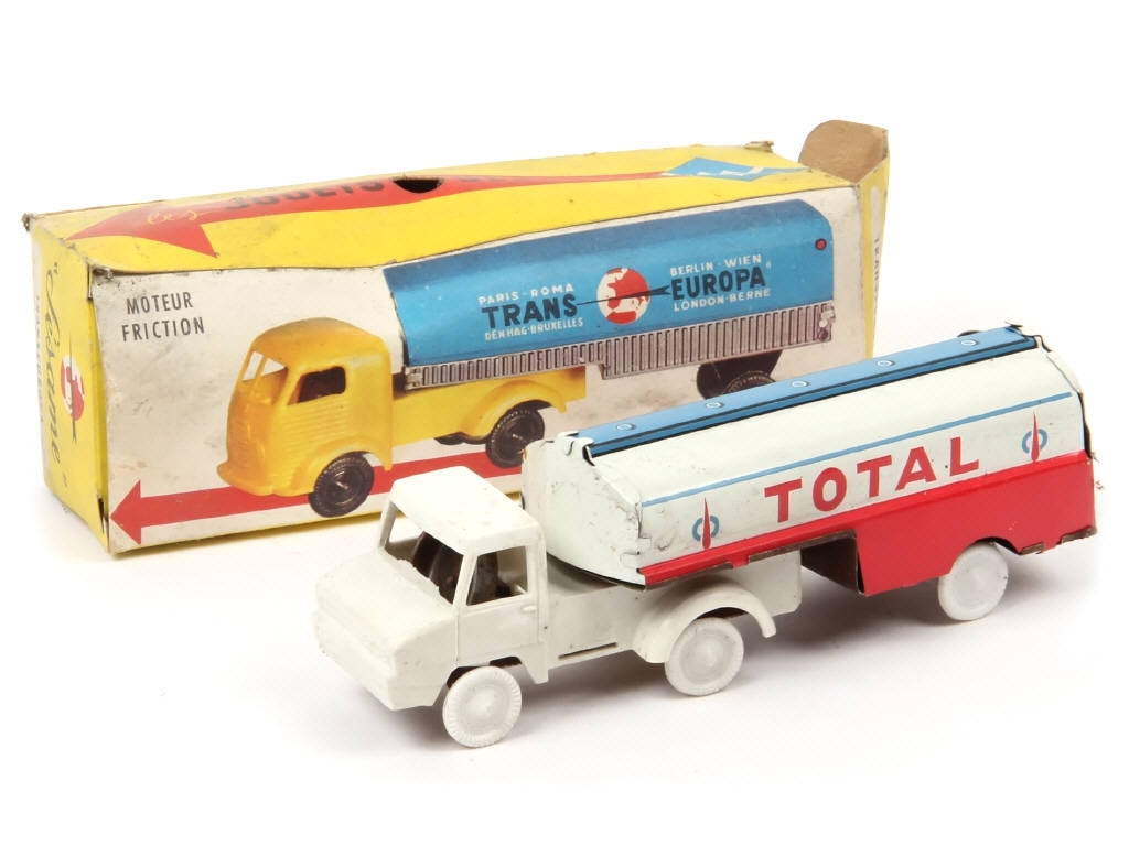 moteur à friction (fonctionne) - importantes traces d'oxydation sur les planchers & éléments - boîte avec marquage 'TRANSEUROPA' (importantes traces d'humidité)