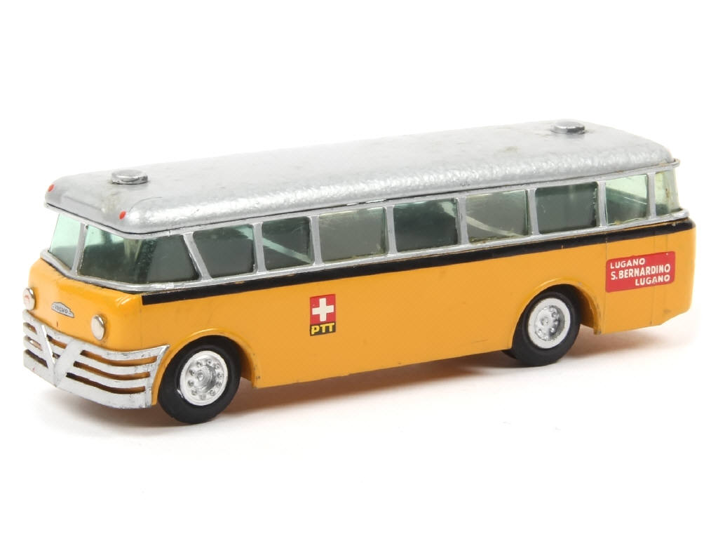avec décalques latéraux 'LUGANO S.BERNADINO LUGANO' - déformations plus ou moins importantes des motants de toit (fixations endommagées) - quelques parties de vitrage non d'origine (quelques fêlures) - frottements sur la carrosserie par endroits
