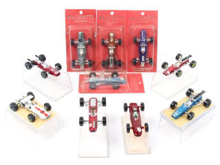 miniatures reproduisant notamment les modèles : FERRARI, PORSCHE & REPCO - on y joint un exemplaire de la marque CHAMPION en état 'C' - les boîtes sont en états de 'b' à 'c' (quelques manques)