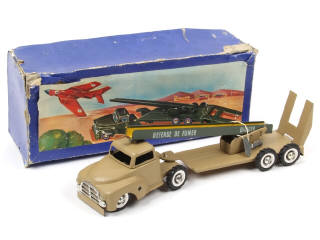 DIVERS Camion semi-remorque avec rampe lance-avion en tôle peinte sable