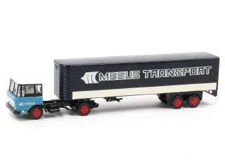LION-CAR (PAYS-BAS) 36 DAF 2600 Semi-remorque fourgon 'MEEUS TRANSPORT' 2 tons de bleu & blanc