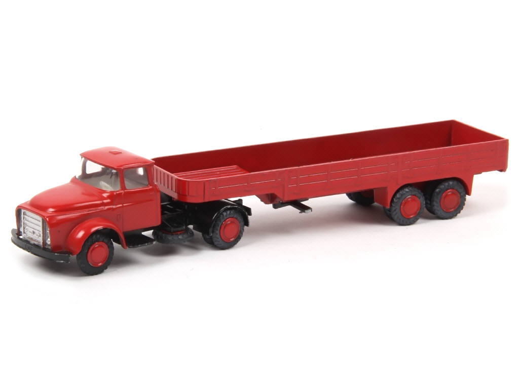 LION-CAR (PAYS-BAS) 33-34 DAF Torpédo semi-remorque plateau à ridelles basses rouge