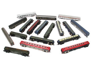 on y retrouve notamment les marques : FLEISCHMANN, LIMA, HORNBY & JOUEF - avec manques, parties cassées & oxydation