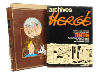 comprend : ARCHIVES HERGE 1973 en très bon état avec étui cartonné & le tome 5 de L'OEUVRE INTEGRALE D'HERGE Rombaldi EO 1985 en très bon état
