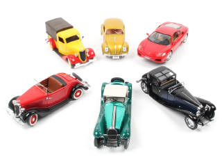 grandes échelles - miniatures reproduisant les modèles : FORD, FERRARI, VOLKSWAGEN & BUGATTI (un exemplaire avec importantes traces de métal fatigue & déformations, état 'C') - on y retrouve les marques : BBURAGO, SOLIDO & FRANKLIN MINT - quelques petits manques