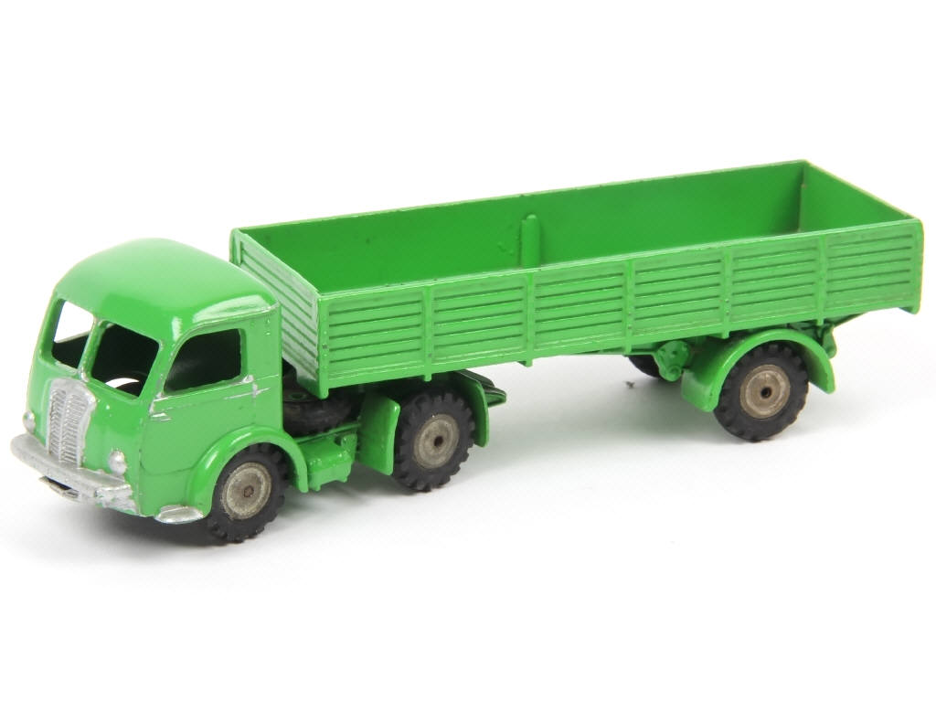 il s'agit de la copie japonaise du moule DINKY TOYS France - jantes & pneus (séchés) spécifiques à la marque nipponne - la roue de secours est du côté opposé à celui de la version française - détails de peinture argentée ajoutés sur le tracteur - sans bâche