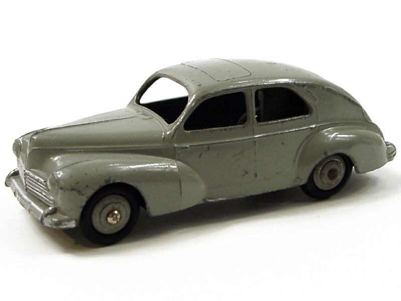 DINKY TOYS (FRANCE) 24R PEUGEOT 203 Petite lunette arrière (version avec intérieur de toit quadrillé & ailes lisses) gris moyen, jantes identiques