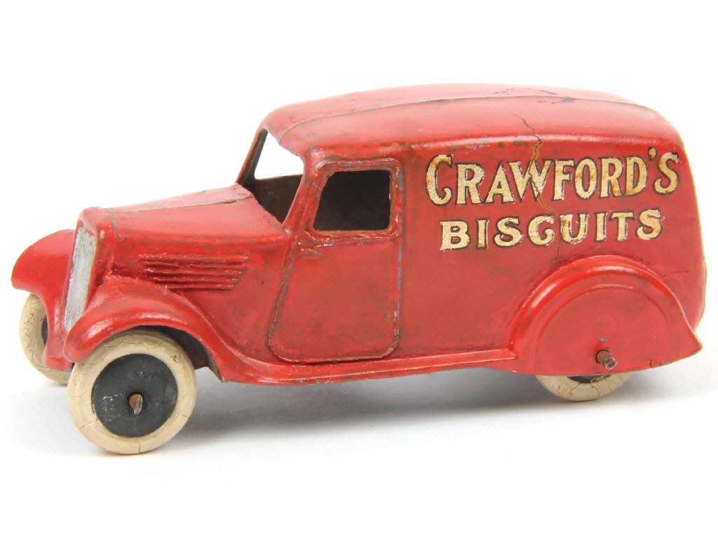 DINKY TOYS (GB) 28-2-P Delivery van 'CRAWFORD'S BISCUITS' rouge, publicités or & noir