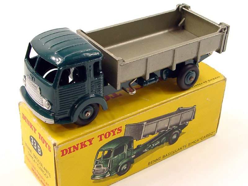 DINKY TOYS (FRANCE) 33B SIMCA CARGO Benne basculante vert foncé, benne gris métal doré (intérieur lisse)