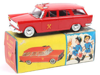 longueur 23 cm - avec moteur à friction & bruiteur (fonctionnent) - un essuie-glace très légèrement déformé - boîte légèrement encrassée (quelques petits manques de papier par endroits)