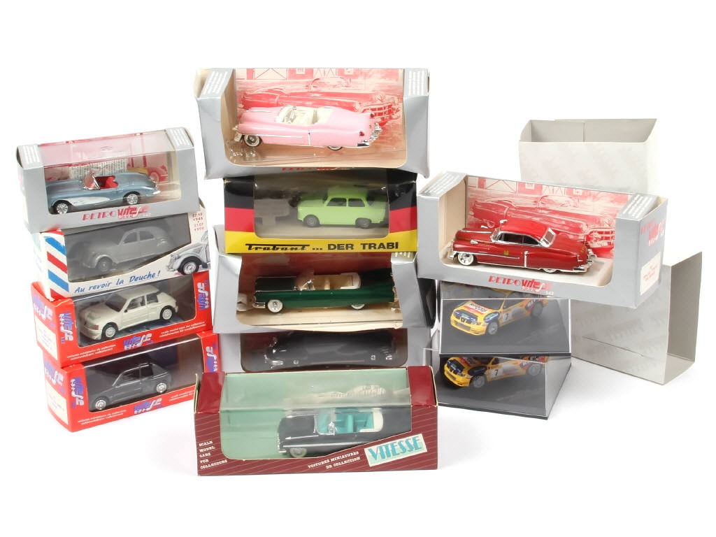 miniatures reproduisant notamment les modèles : PEUGEOT, CITROËN & TRABANT - quelques petits accessoires cassés & manquants (suivants les modèles) - les boîtes sont en état 'a' à 'd'