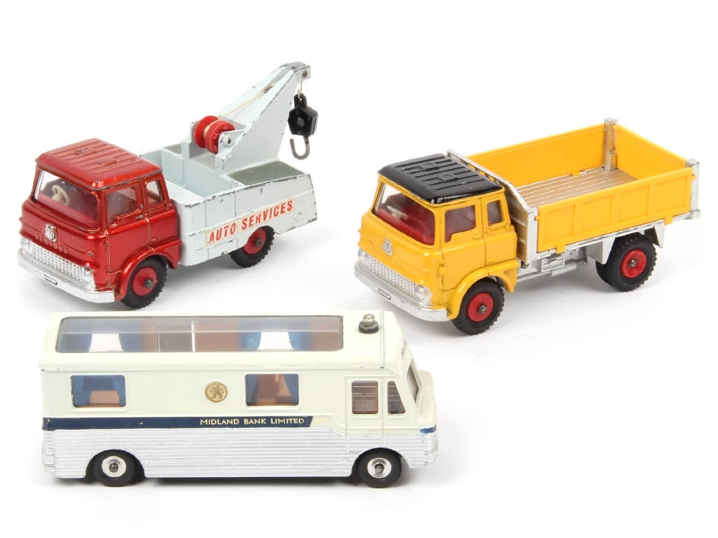 comprend : MOBILE MIDLAND BANK, BEDFORD benne basculante (une fixation de ridelle cassée & manquante) & dépanneuse (état 'E', crochet & ficelle non d'origine)