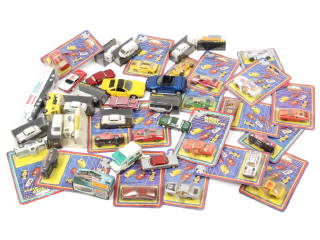 miniatures reproduisant notamment les modèles : RENAULT, ROLLS ROYCE & FERRARI - on y retrouve les marques : ROAD TOUGH, MAISTO, VEREM & MATCHBOX - boites en état 'b' (quelques uns sans et d'autres jamais ouverts)