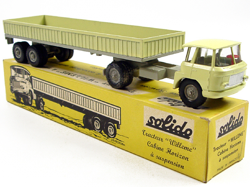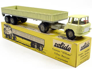 SOLIDO (FRANCE) 302 WILLEME Semi-remorque plateau à ridelles TITAN jaune pâle & gris