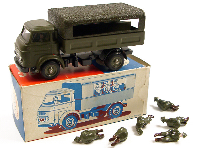 3ème version, avec mention 'SAVIEM' au dessus de la calandre & bâche imitation textile - complet avec les 6 soldats d'origine - très léger enfoncement sur la ridelle arrière