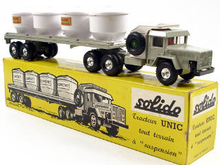 SOLIDO (FRANCE) 301 UNIC Semi-remorque plateau transport de cuves à farine gris clair & blanc