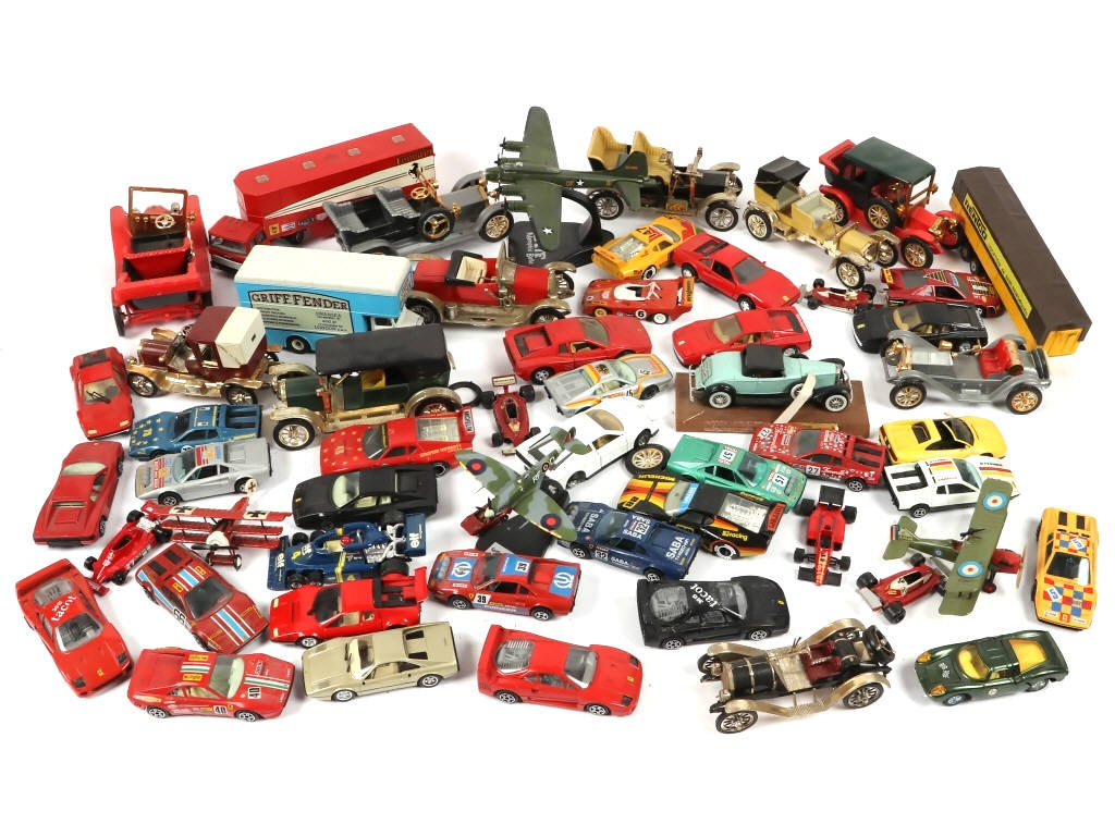 différentes échelles & fabrications - on y retrouve notamment les marques : MAJORETTE, SOLIDO, MATCHBOX, CORGI & JOAL - comprend notamment les modèles : FIAT, FERRARI, PORSCHE & BEDFORD - manques & parties cassées