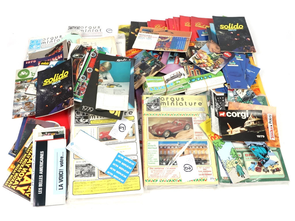on y retrouve notamment les marques : CORGI, SOLIDO, SIKU, MECCANO, BRUMM & ELIGOR - comprend notamment : l'argus de la miniature, fascicules, catalogues et revues - possibilités de manques et déchirures