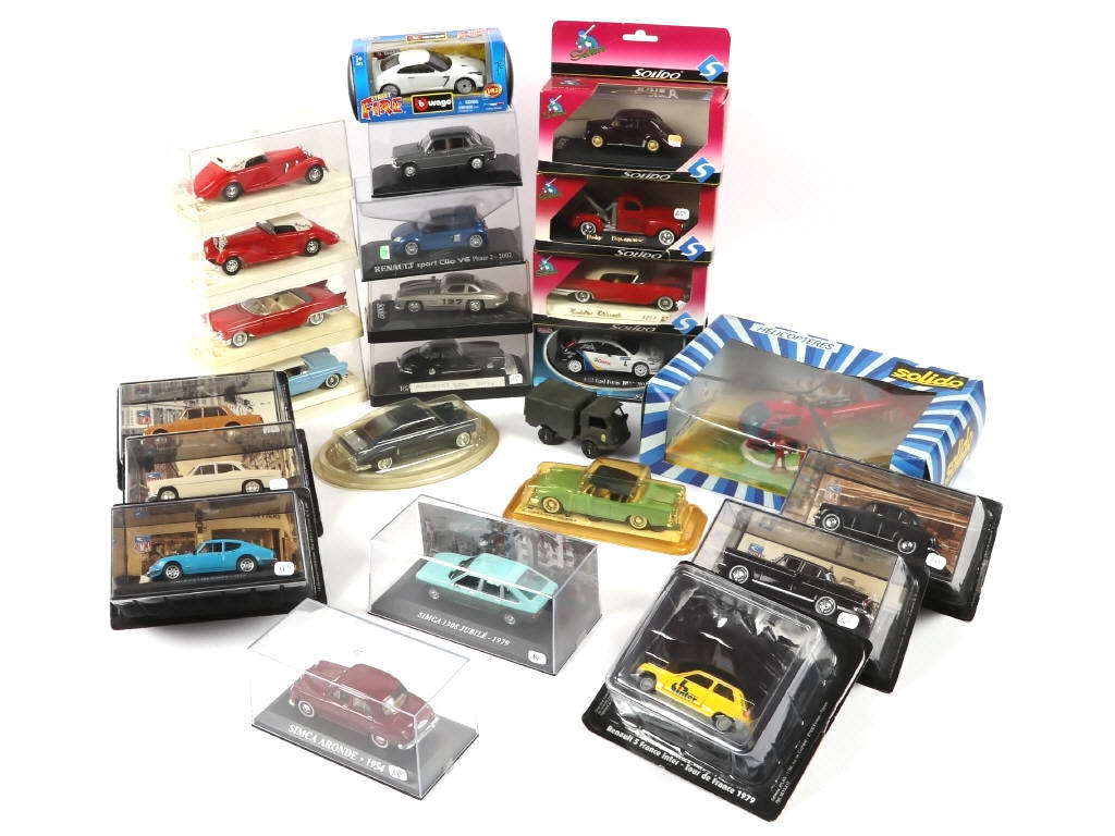 on y retrouve notamment les marques : SOLIDO, VEREM & ATLAS - comprend notamment les modèles : SIMCA, RENAULT, NISSAN, MERCEDES, FORD & DODGE - boîte en état de 'a' à 'b' - un modèle sans boîte - possibilité de manques & parties cassées