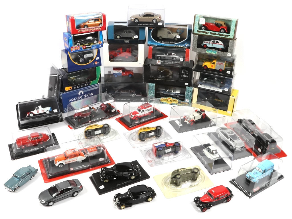 on y retrouve notamment les marques : ELIGOR, ALTAYA, BBURAGO, ATLAS, SOLIDO & MATCHBOX - comprend notamment les modèles : CITROËN, PEUGEOT, SIMCA & MERCEDES - 5 modèles sans boîte - manques et parties cassées - on y joint une boîte vide de la marque AUTOPLUS devant contenir une 2CV AKS 400