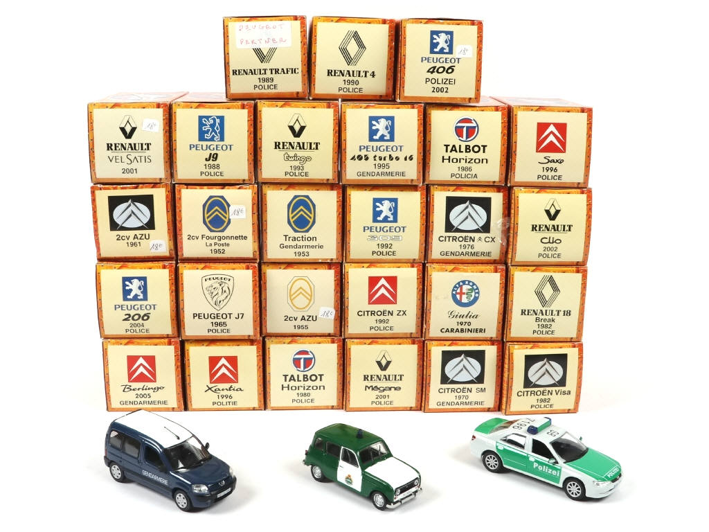 comprend notamment les modèles : CITROËN, RENAULT, PEUGEOT, ALFA ROMEO & TALBOT - boîtes en état de 'b' à 'c' - possibilité de manques & parties cassées