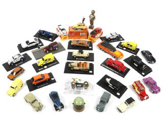 on y retrouve notamment les marques : SOLIDO, NOREV, ELIGOR & VITESSE - comprend notamment les modèles : CITROËN, OPEL, AUDI & MERCEDES - possibilité de manques & parties cassées - 3 modèles en boîtes 'a' à 'b' - on y joint un casque de DAVID PIPER & une reproduction miniature du MANNEKEN-PIS