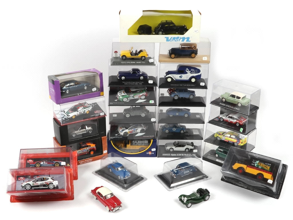 on y retrouve notamment les marques : VEREM, SOLIDO, NOREV & NOSTALGIE - comprend notamment les modèles : LANCIA, RENAULT, MITSUBISHI & FERRARI - boîtes en états de 'a' à 'c' - 2 modèles sans boîte - possibilité de manques & parties cassées