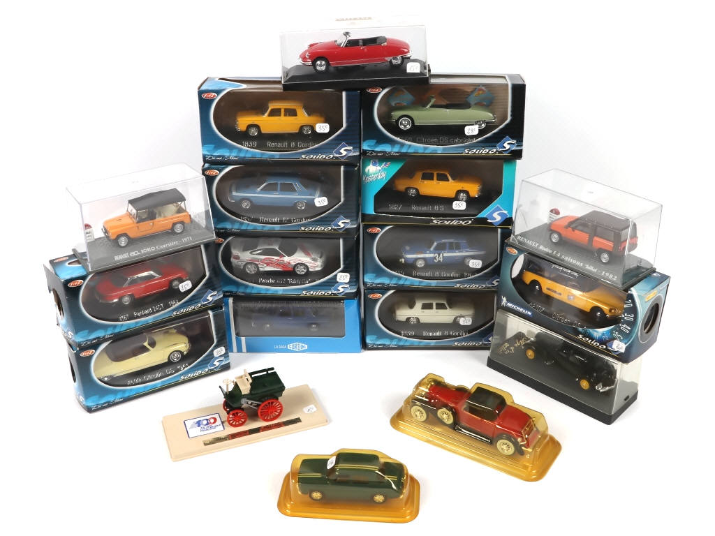 on y retrouve notamment les marques : UNIVERSAL HOBBIES, SOLIDO, ELIGOR & VITESSE - comprend notamment les modèles : RENAULT, CITROËN, DELAMARE, PANHARD - boîtes en états de 'a' à 'c' (certaines jaunies) - possibilité de manques & parties cassées