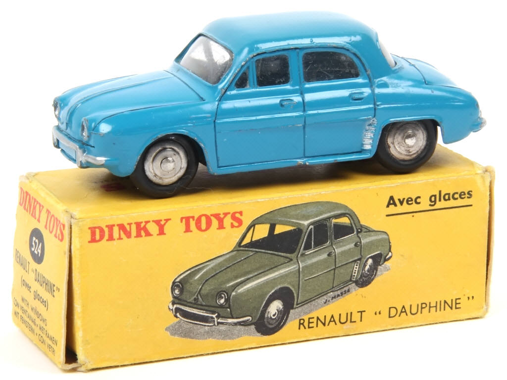 DINKY TOYS (FRANCE) 524 RENAULT DAUPHINE (version avec vitres & jantes convexes) bleu vif