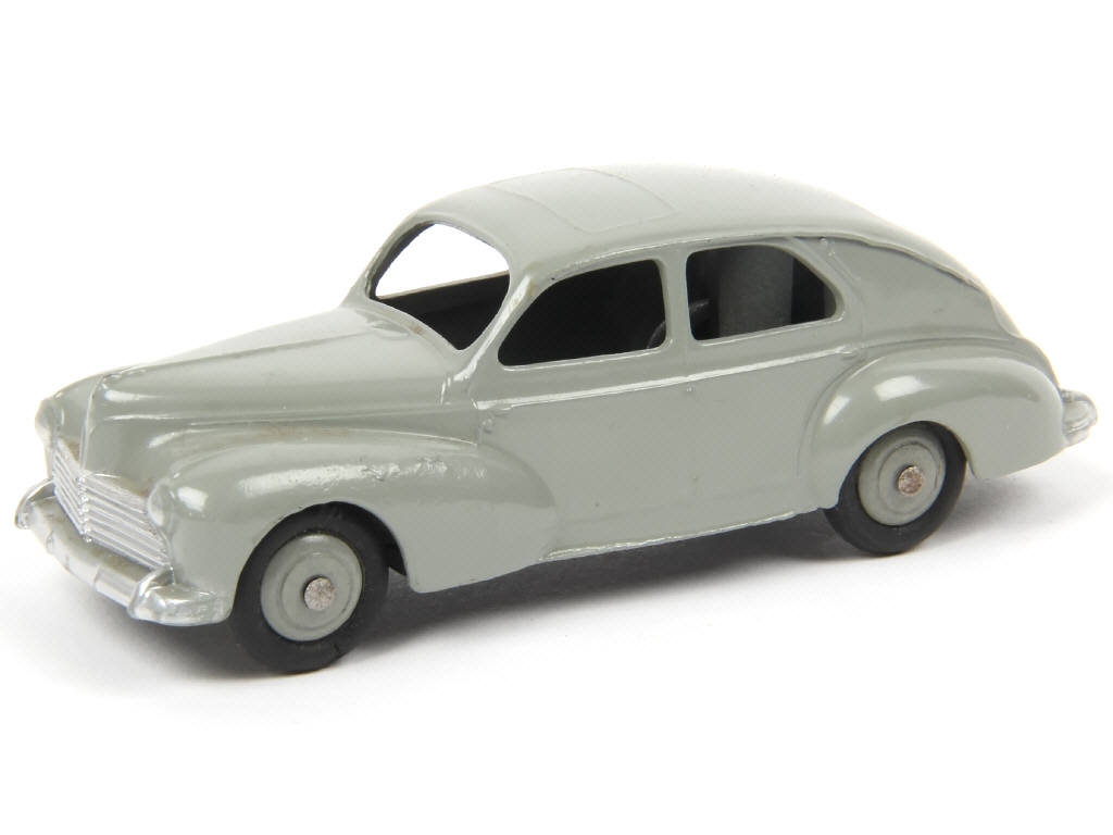 DINKY TOYS (FRANCE) 24R PEUGEOT 203 Petite lunette arrière (version avec intérieur de toit quadrillé & ailes lisses) gris moyen, jantes identiques